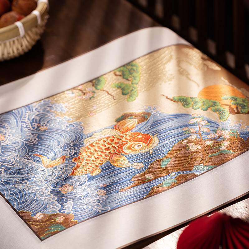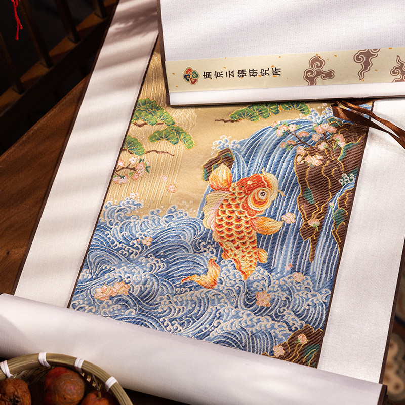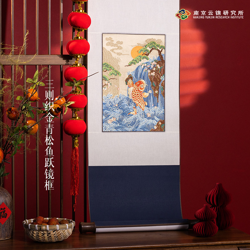 鱼跃龙门南京云锦研究所生财高升非遗手工刺绣卷轴挂画高档送礼