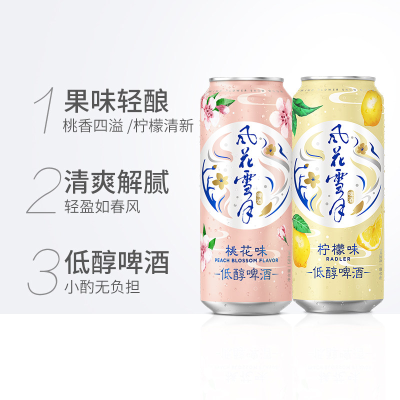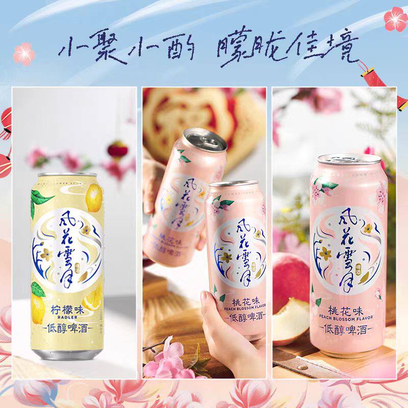 风花雪月啤酒低醇500ml*12罐桃花/柠檬味混合整箱装嘉士伯集团