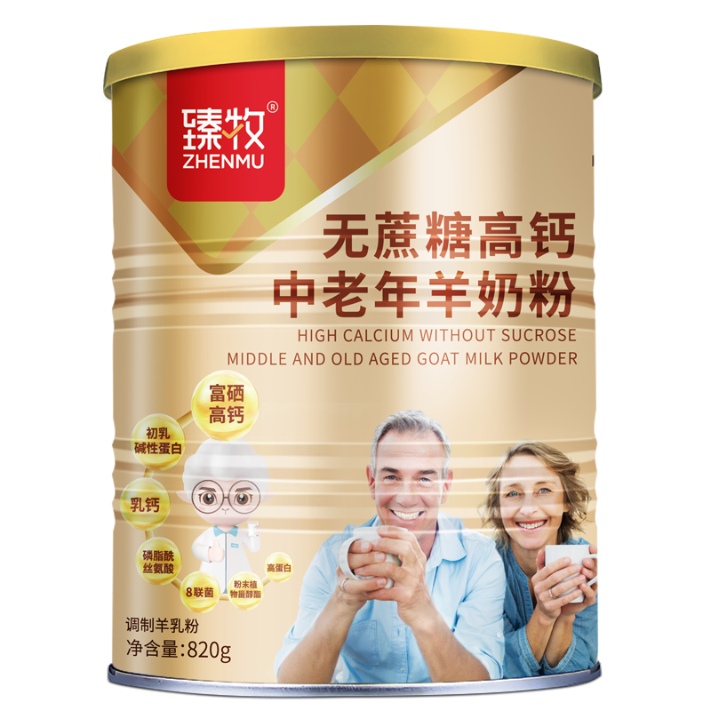 臻牧无蔗糖富硒高钙蛋白中老年人羊奶粉820g官方正品礼盒成人