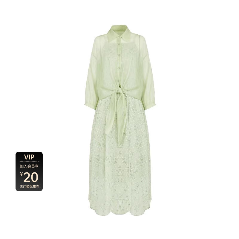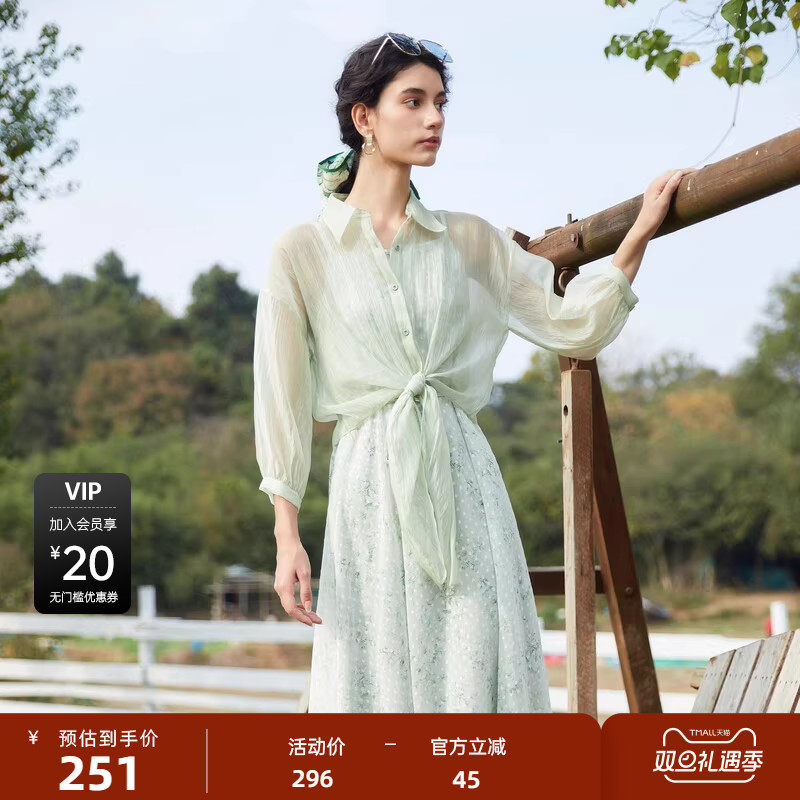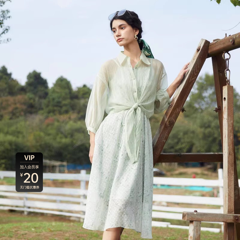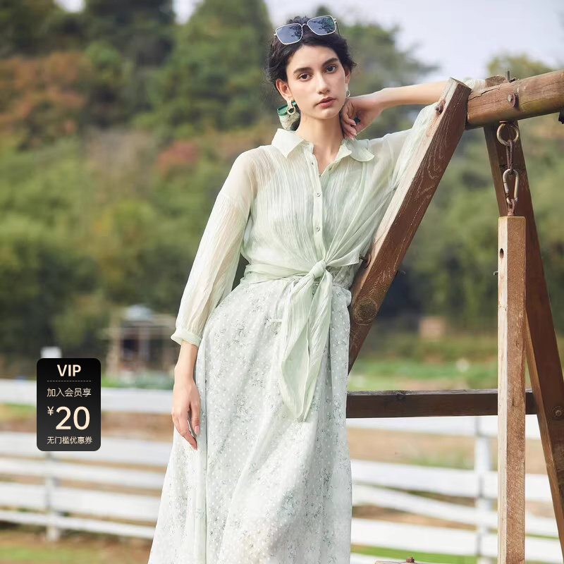 sdeer圣迪奥女装田园风清新波点碎花收腰连衣裙套装S24261403