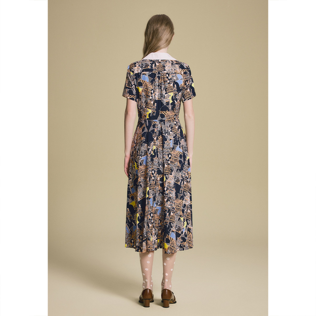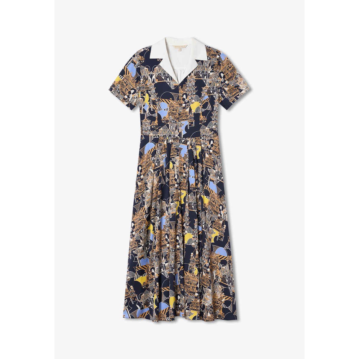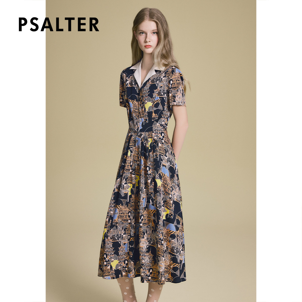 诗篇专选时尚撞色翻领几何碎花收腰显瘦桑蚕丝连衣裙2025夏季新款