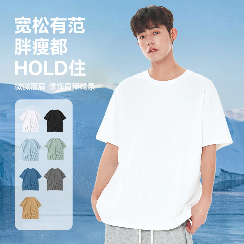 小尼力重磅纯色打底衫纯棉oversize白色短袖T恤男夏季体恤上衣服