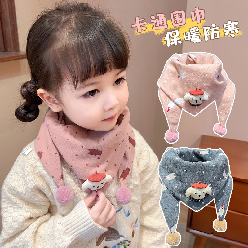 尼多熊2023宝宝围脖儿童围巾秋冬男女宝宝三角巾防风婴儿三角头巾