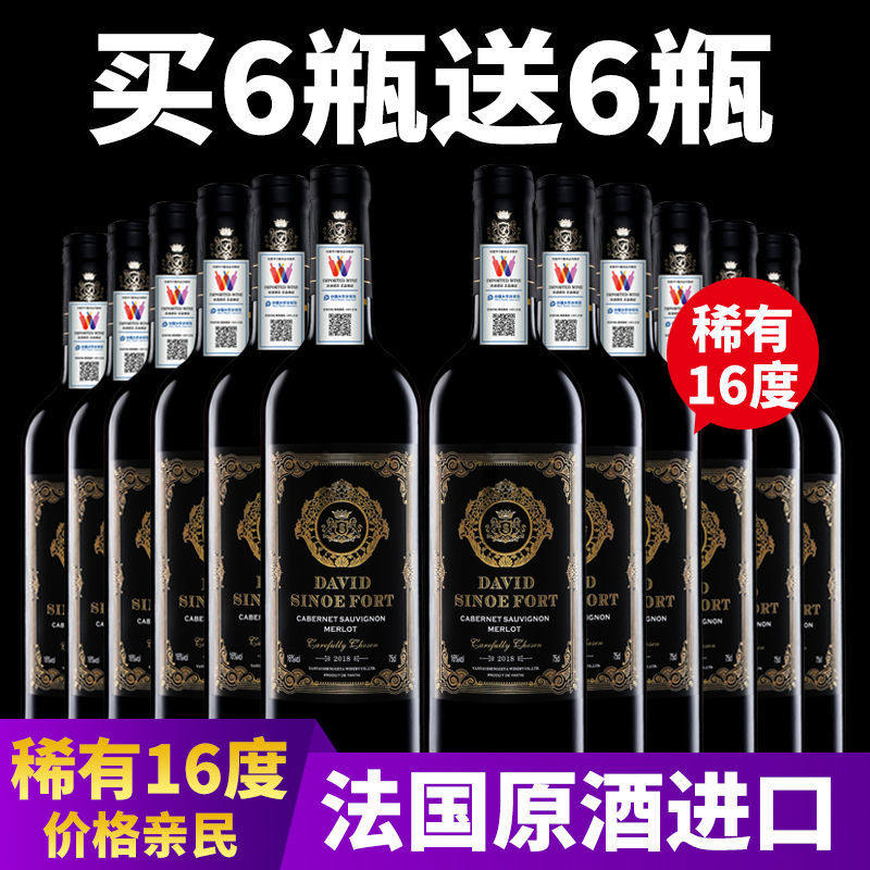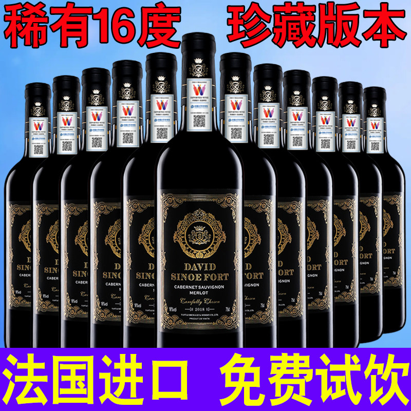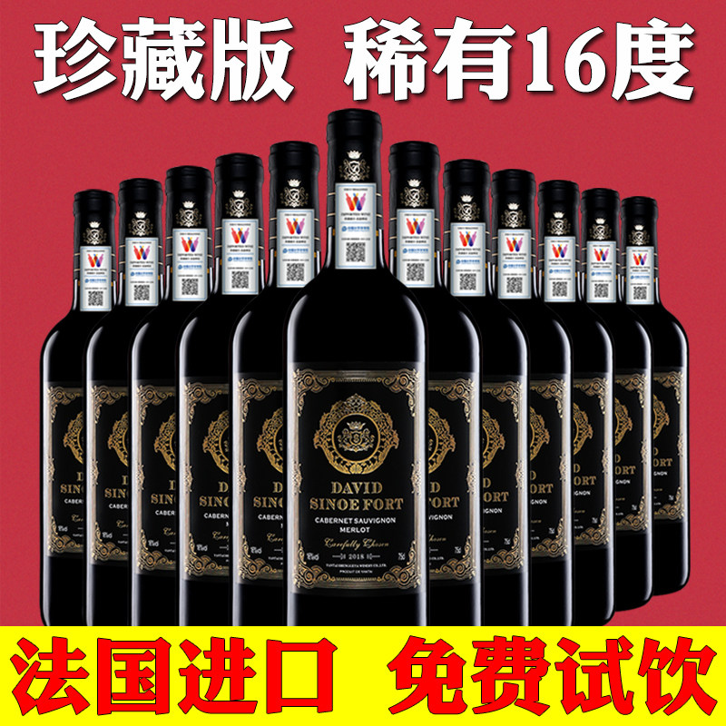 买一箱送法国进口16度干红葡萄酒红酒稀有高度数珍藏国产