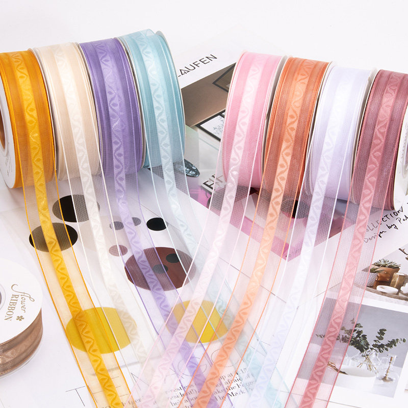 2.5cm新款流光蔓影纱彩带花艺鲜花束包装丝带DIY手工礼物烘焙纱带