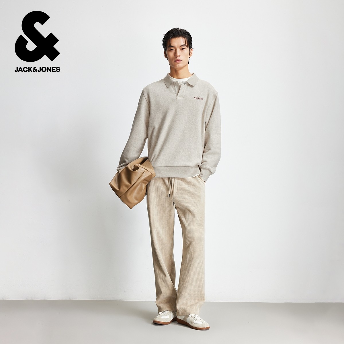 杰克琼斯奥特莱斯男装卫衣冬季新款时尚刺绣休闲薄绒翻领长袖上衣