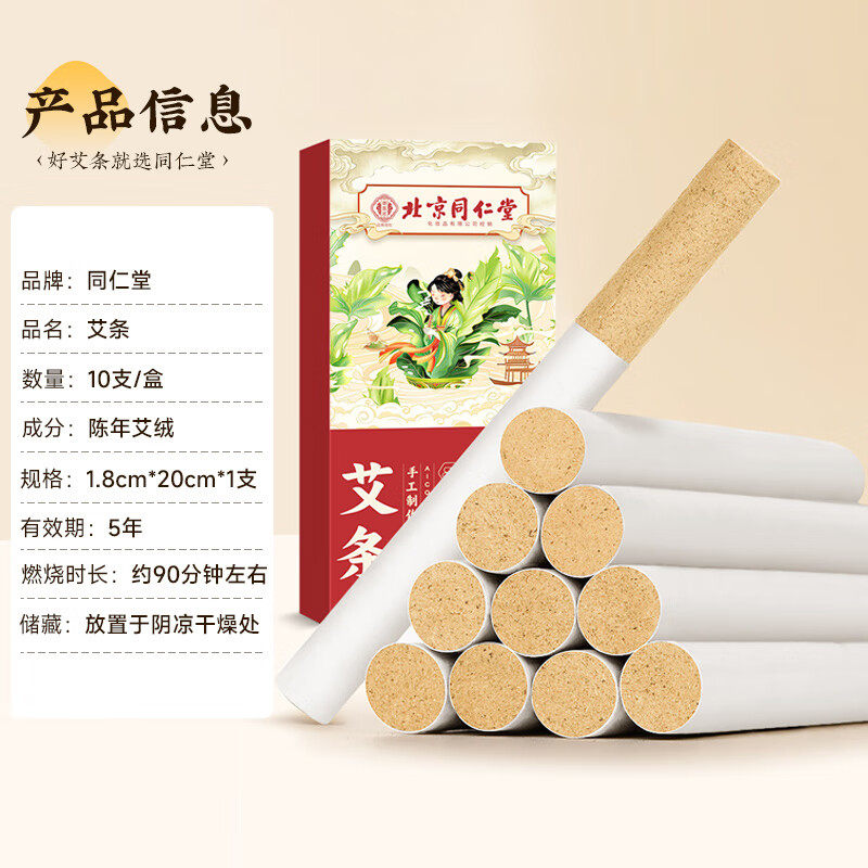北京同仁堂纯艾艾条艾柱短陈正品无烟艾灸盒随身灸家用艾灸养生