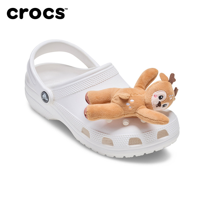白鹿同款Crocs卡骆驰智必星配件洞洞鞋花 卡其色毛绒驯鹿