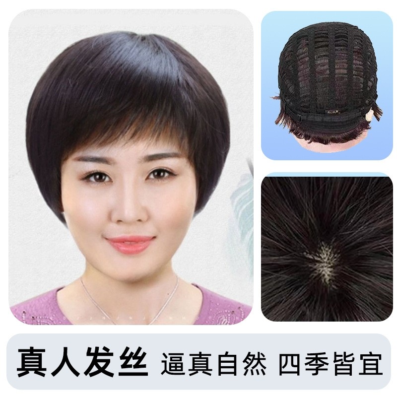 中老年假发女士真发妈妈短发老年人短直发化疗假发发套假发仿真头