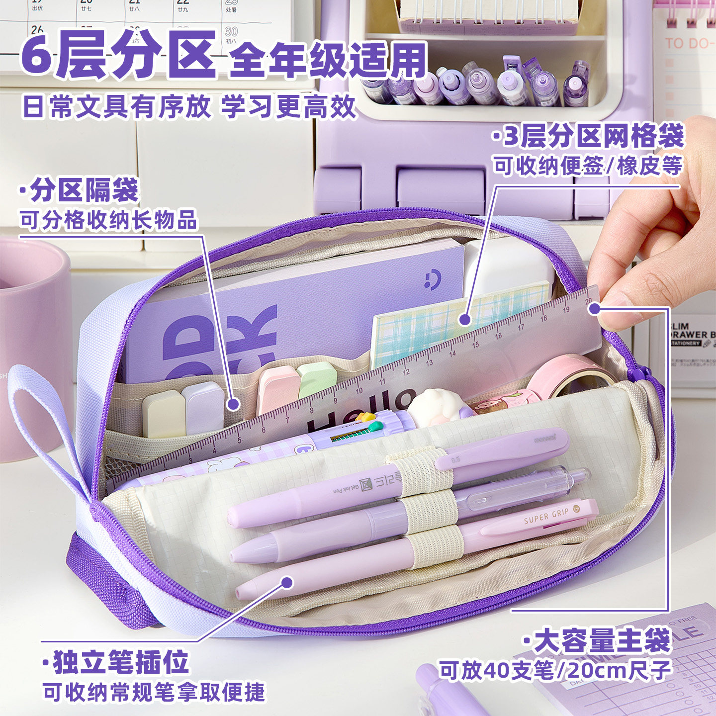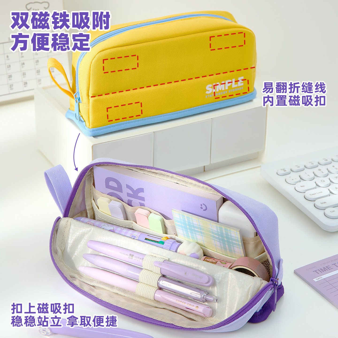 三年二班 磁吸笔袋防污内衬文具袋高颜值ins风男女孩款2026年新款大容量超火简约小众不撞款便携日韩立式笔袋