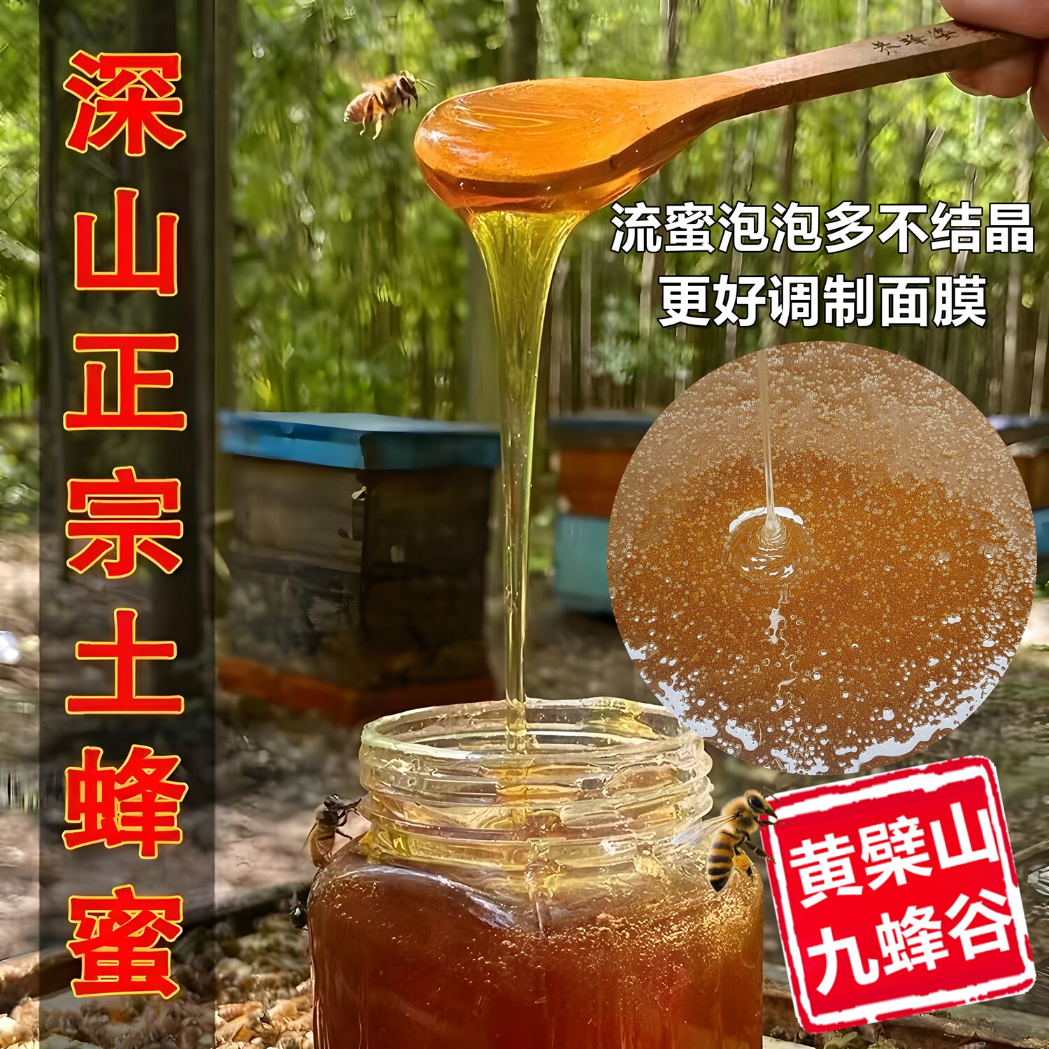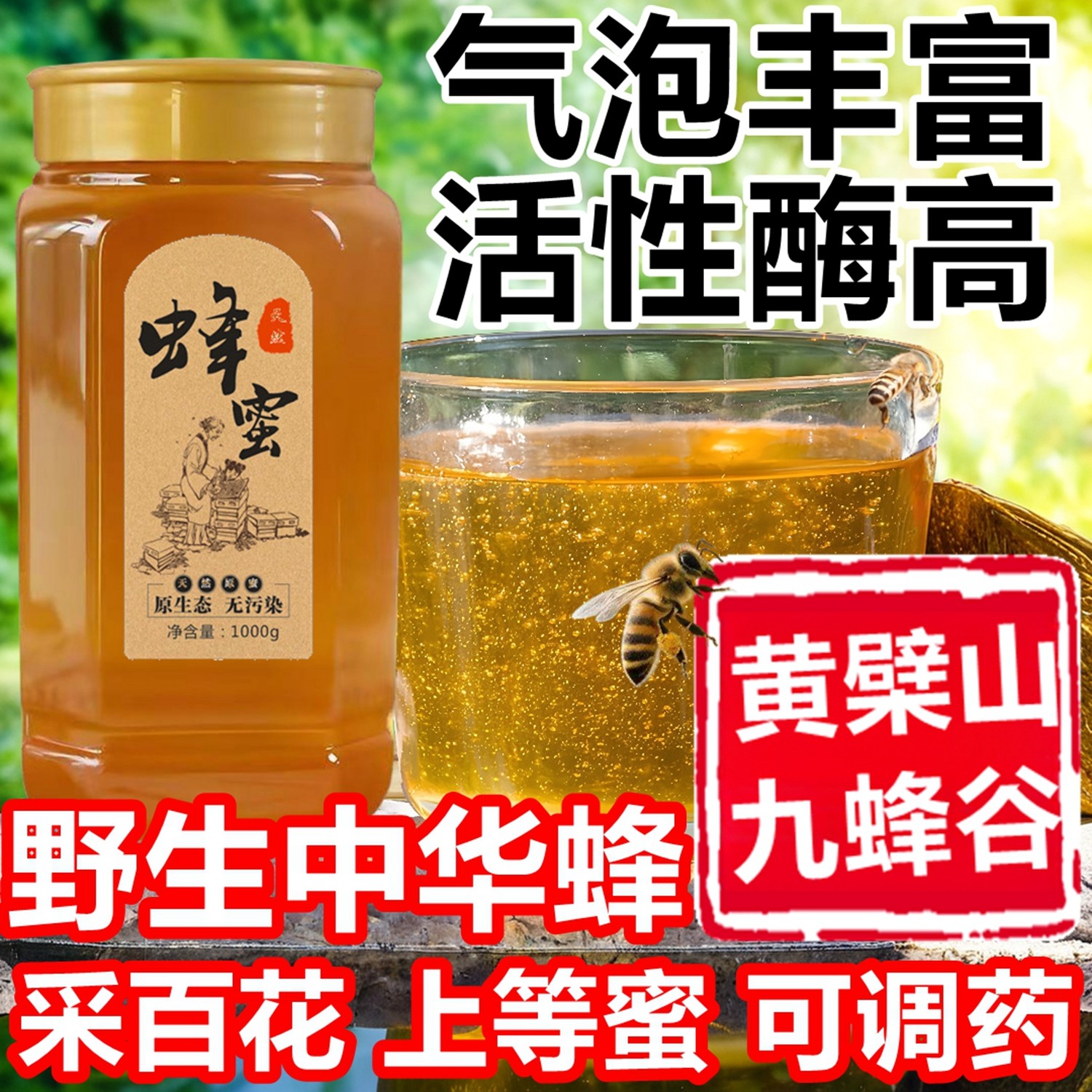 徽黄蜂蜜纯正天然农家正宗土蜂洋槐蜜百花自产椴树避光瓶正品