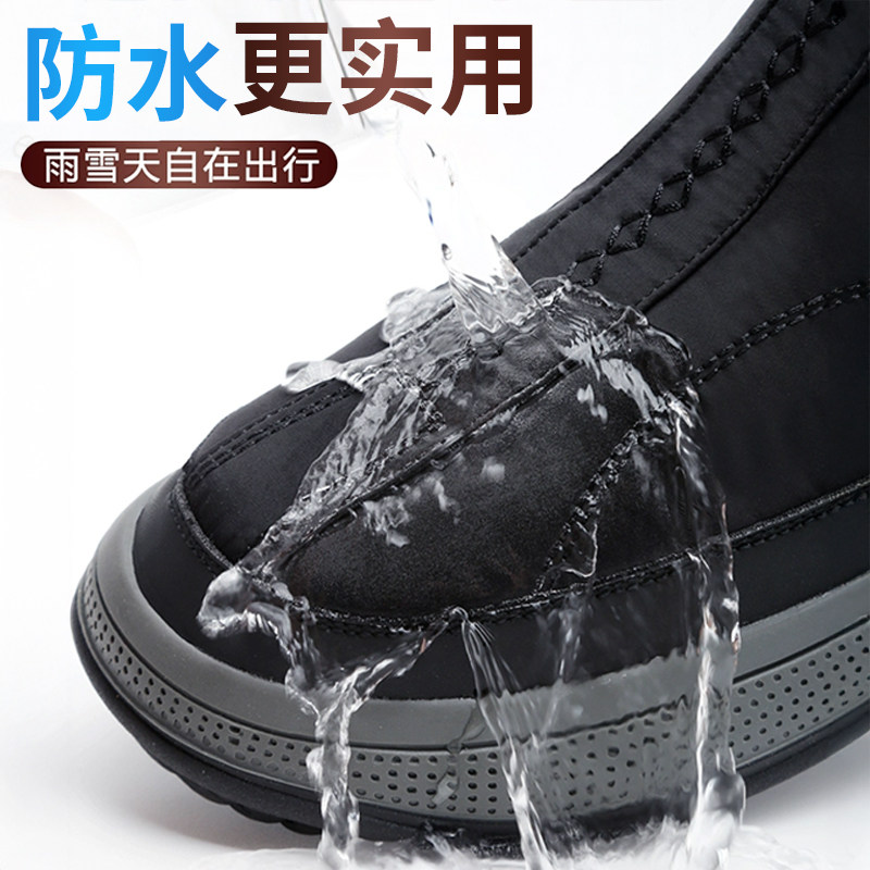 老北京棉鞋男防水防滑一脚蹬冬季加绒加厚保暖布鞋中老年男雪地靴