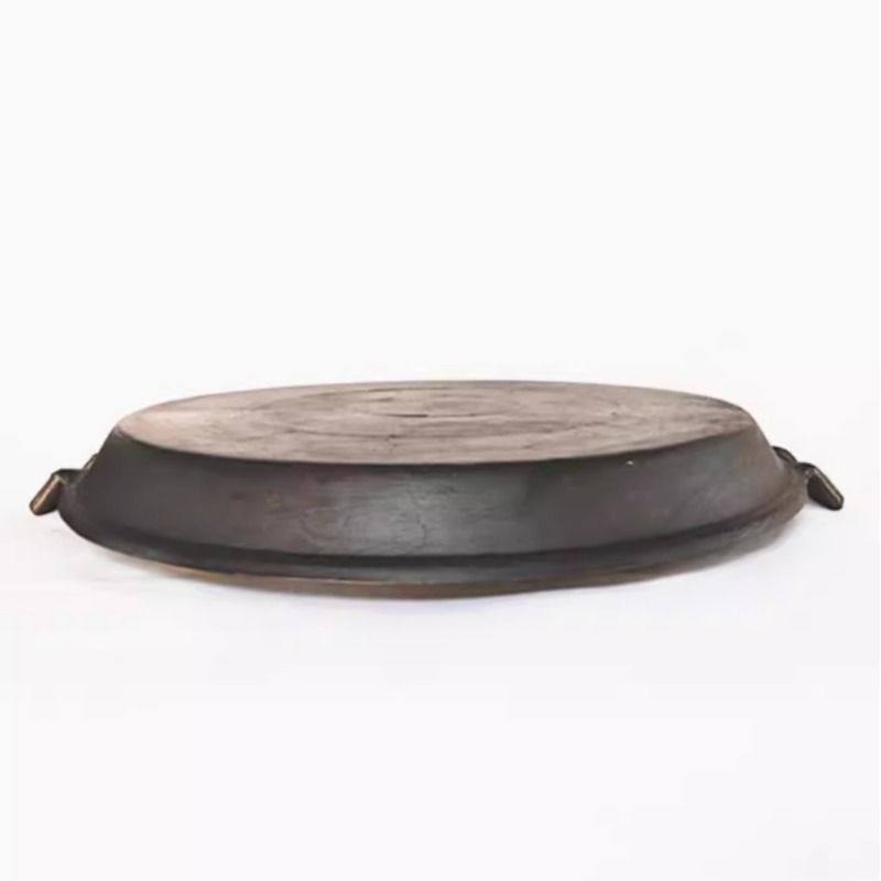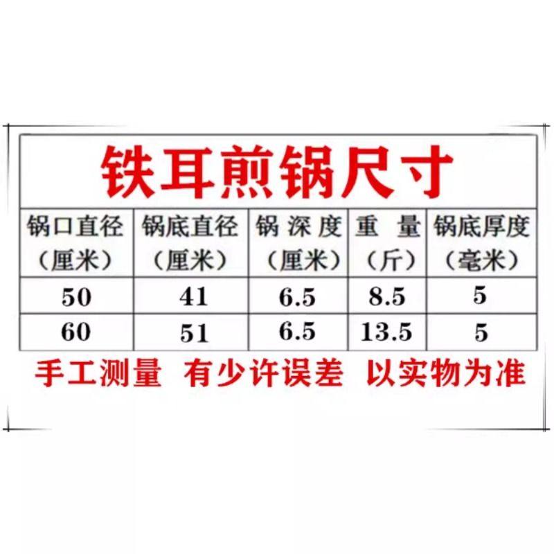 陆川老式生铁煎锅商用摆摊无涂层物理不粘锅加厚平底双耳铸铁锅