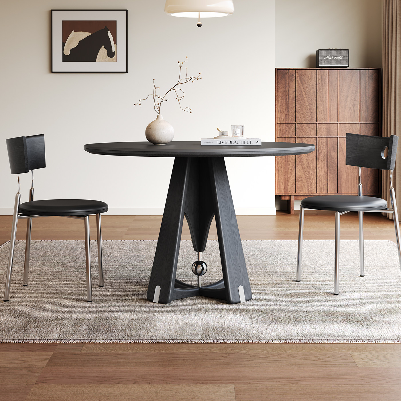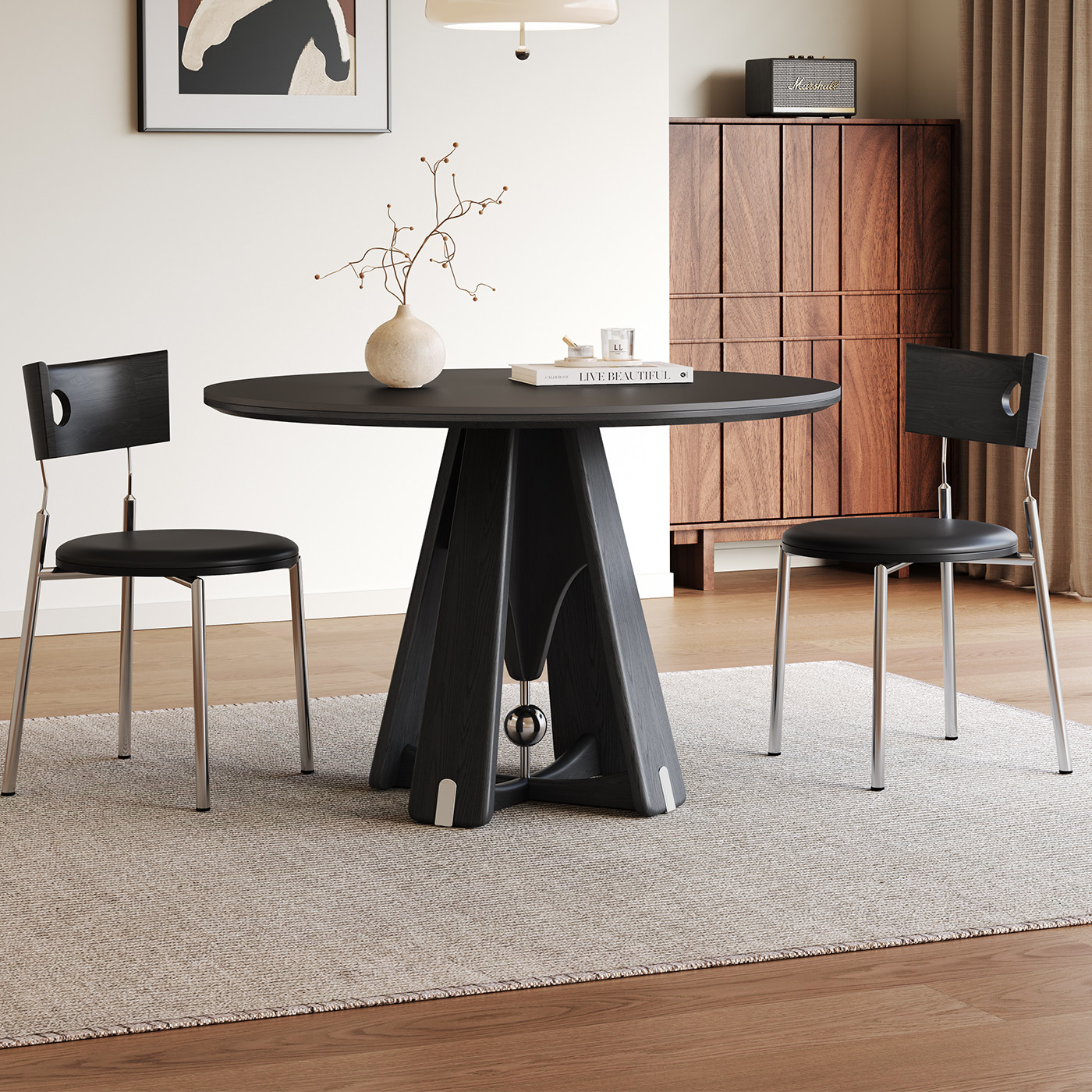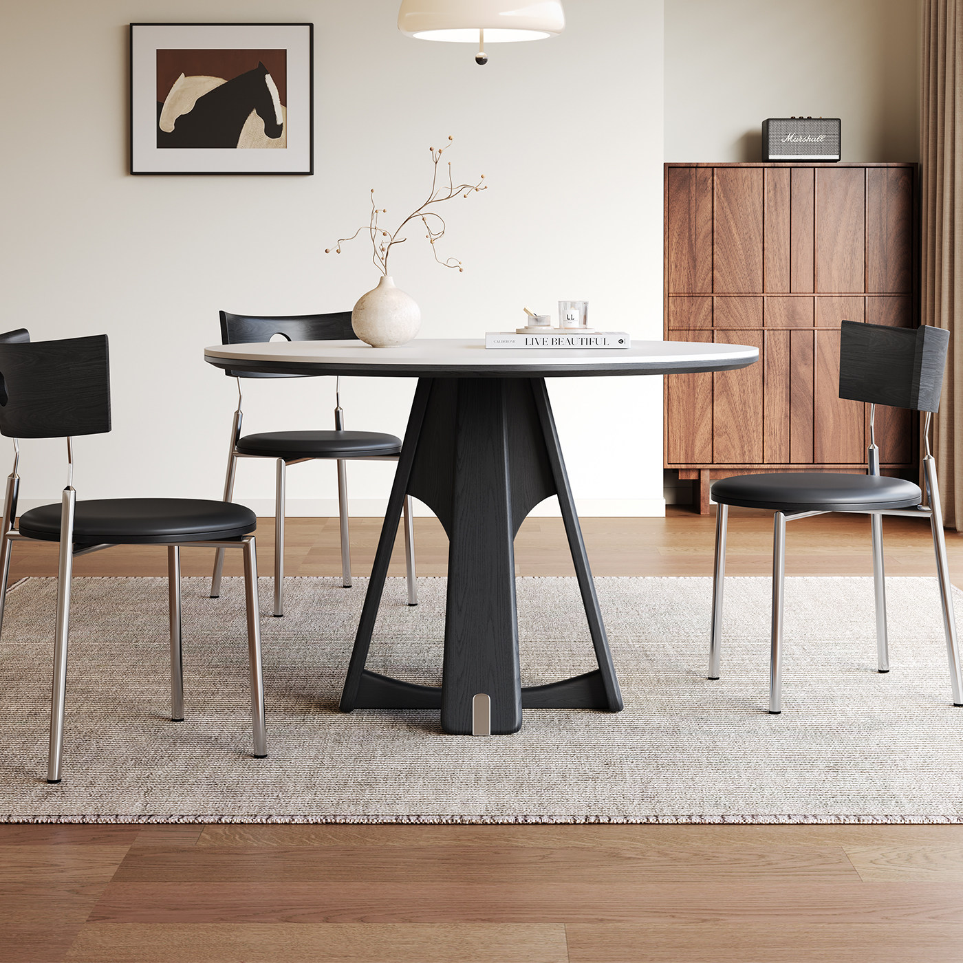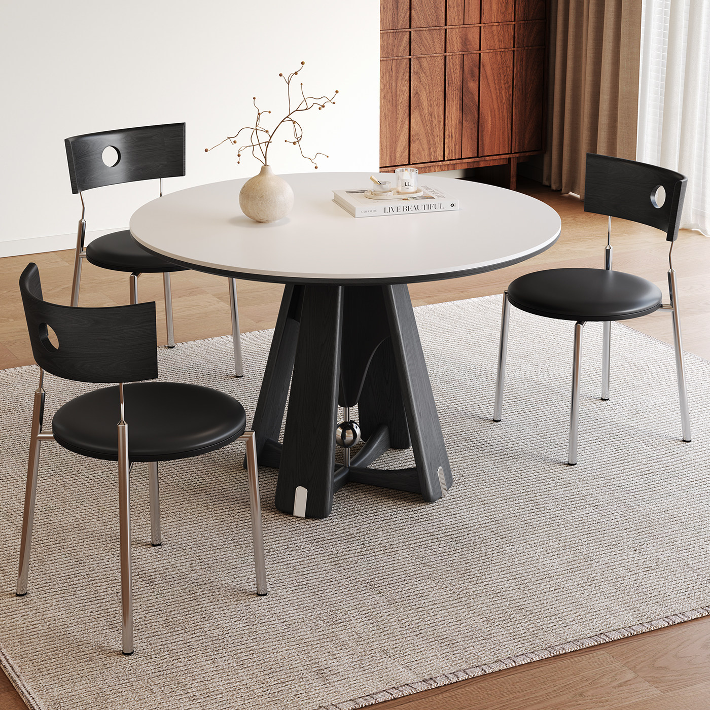 圆形实木餐桌家用小户型复古风2025新款1.2米包豪斯哑光岩板圆桌