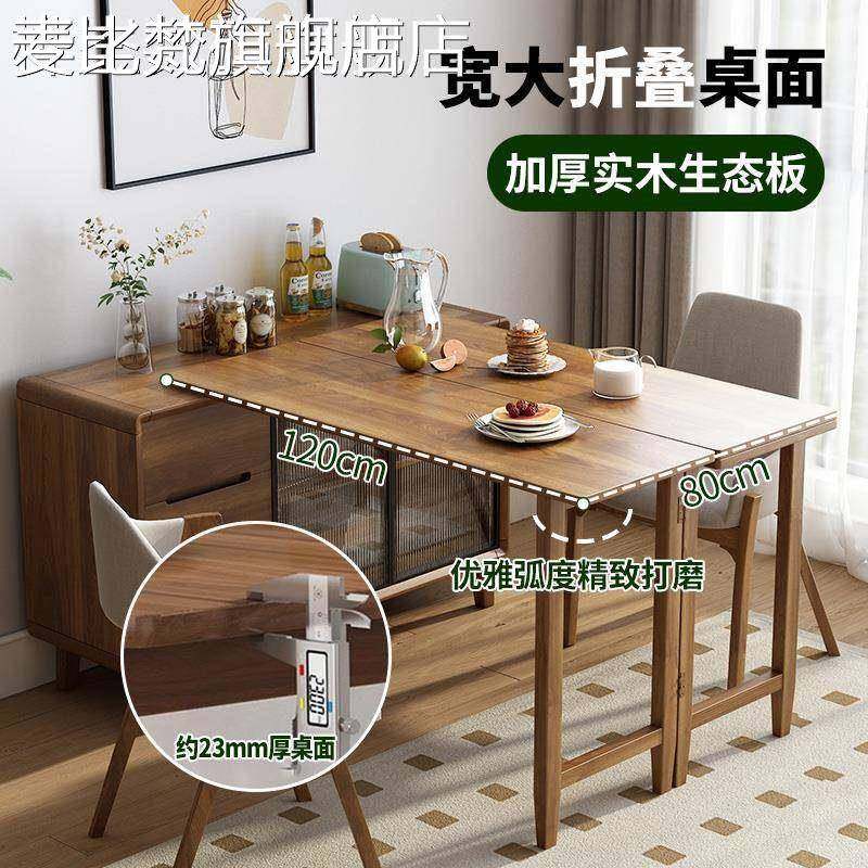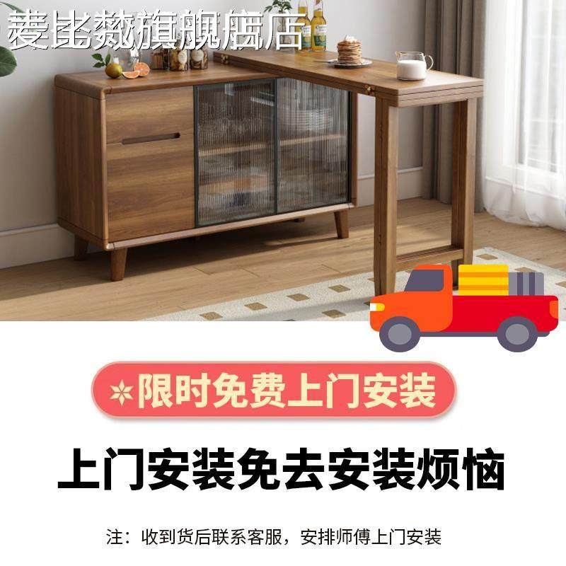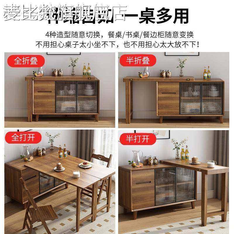 麦比梵实木折叠餐桌餐边柜一体岛台吧台小户型家用靠墙储物柜可伸缩饭桌床笠拉车