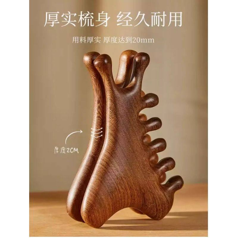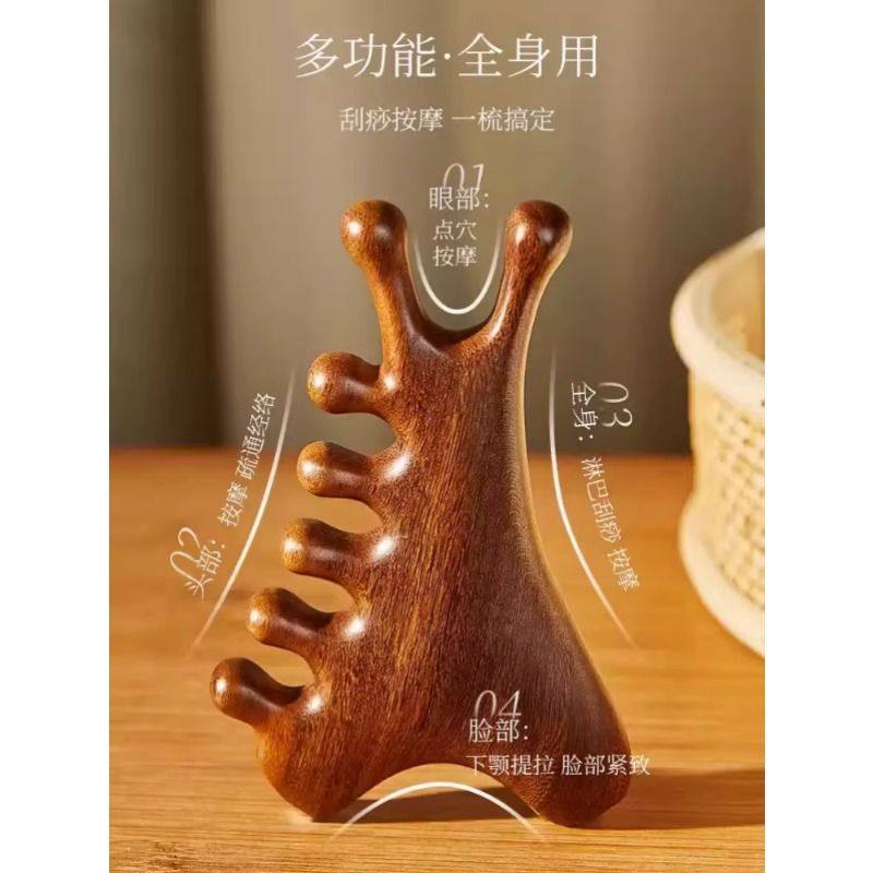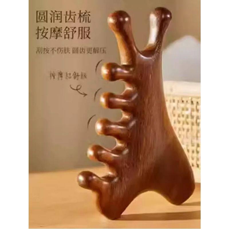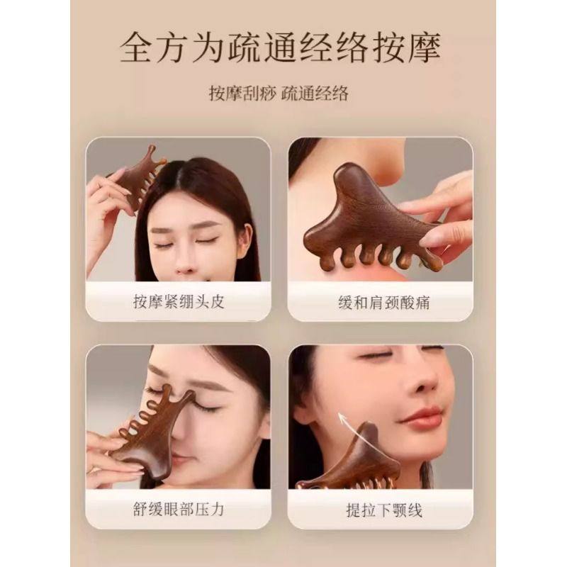 四合一多功能头皮檀木按摩梳子头部脱发头疗脸部刮痧疏通经络神器