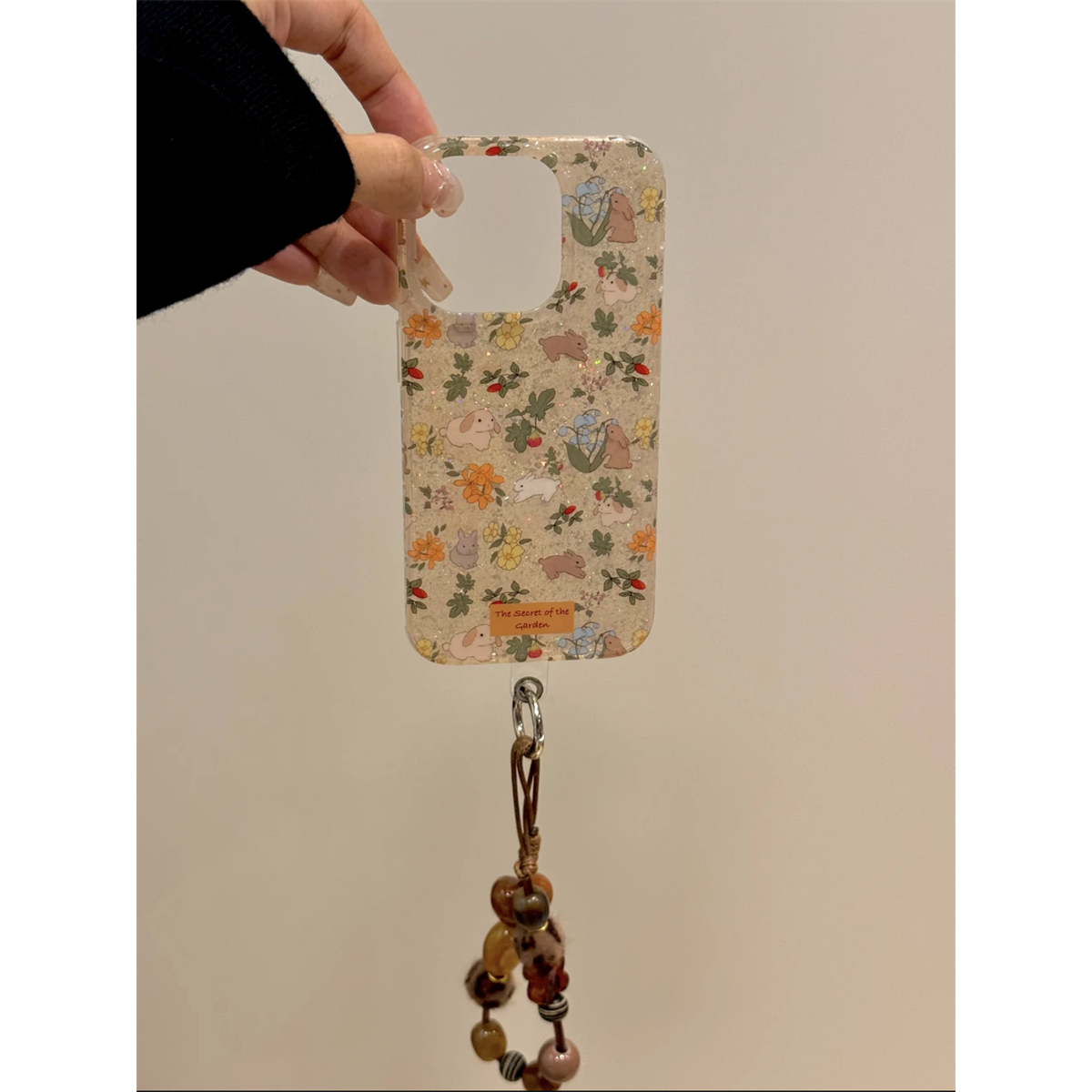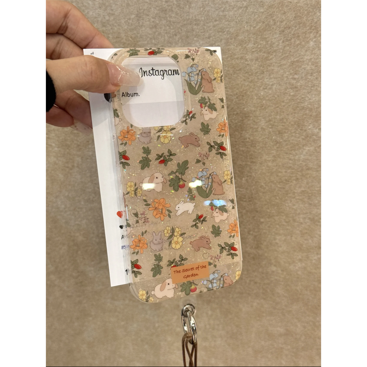 透明闪粉花朵可爱兔子适用iphone15promax苹果16手机壳新款17女款超火13pro全包14pro防摔保护套链条