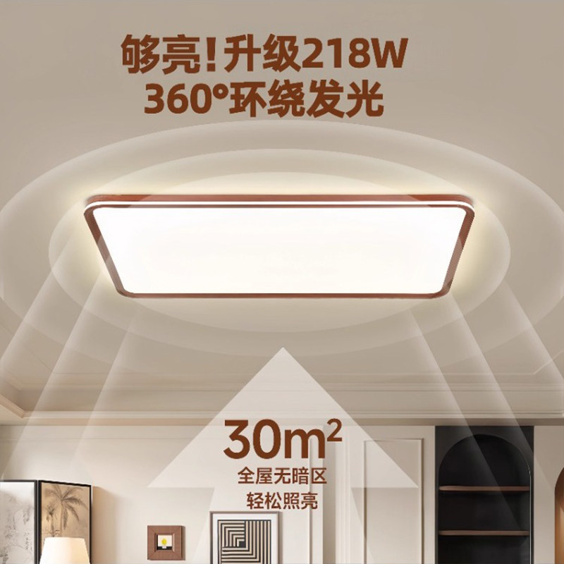 雷士照明中古风吸顶灯超薄超亮胡桃木纹客厅卧室灯全光谱全屋灯具