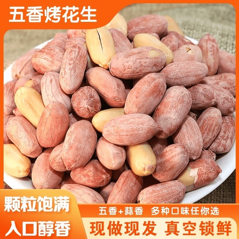 去壳花生米带皮烘烤五香奶香蒜香味咸干酥脆东北特产零食下酒菜