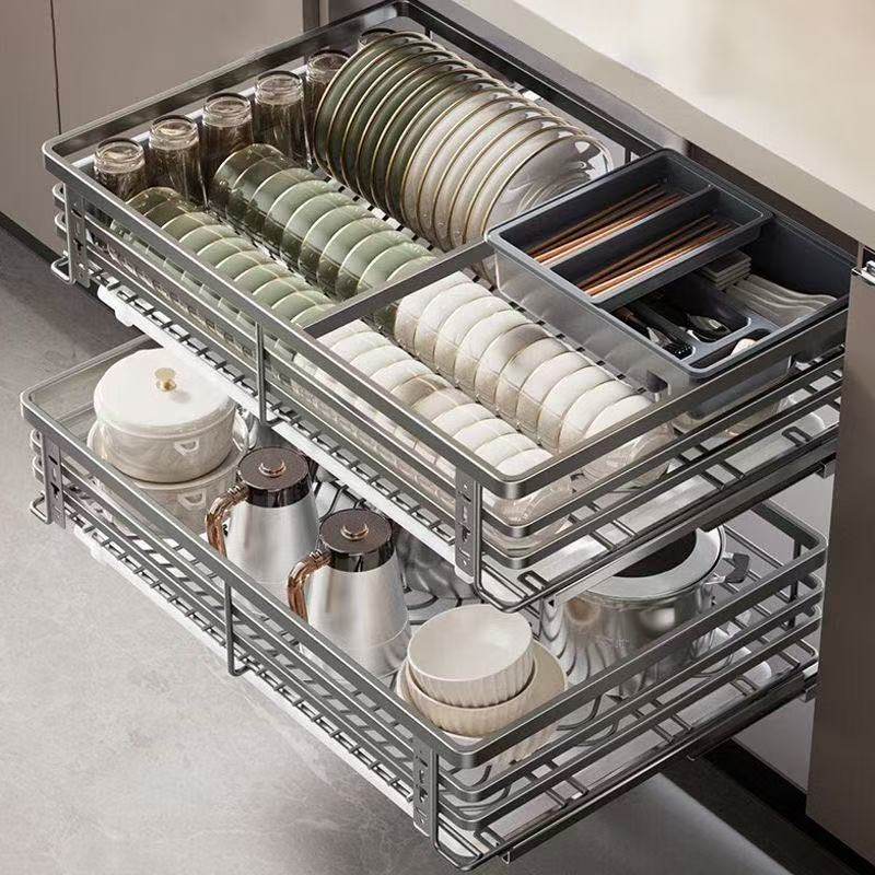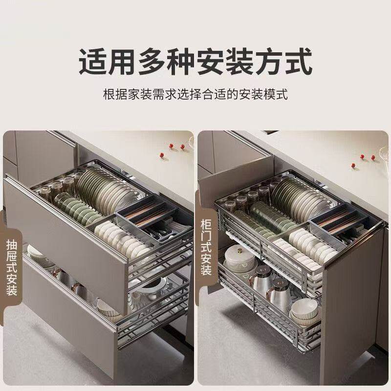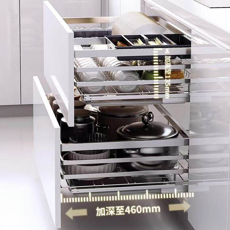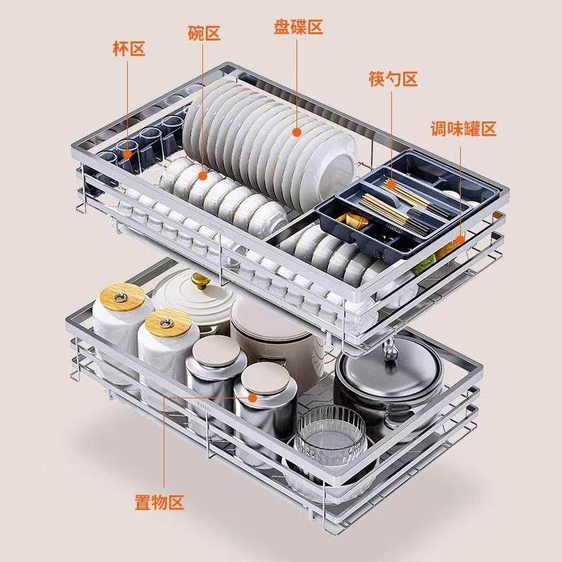奥乐厨拉篮厨房橱柜抽屉式优质不锈钢碗碟碗柜双层厨柜碗架碗篮