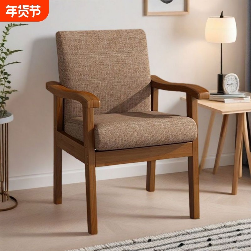实木沙发椅带扶手电脑椅书桌椅家用阳台靠背椅麻将椅子休闲老人椅