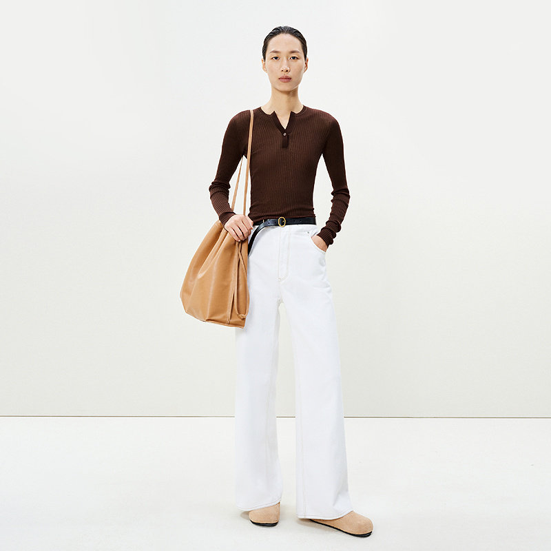 三福长袖上衣2025新款秋季圆领修身针织衫简约纯色内搭打底衫女装