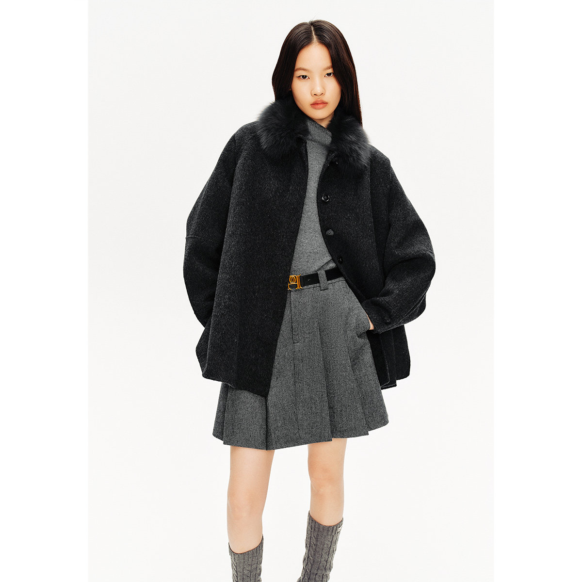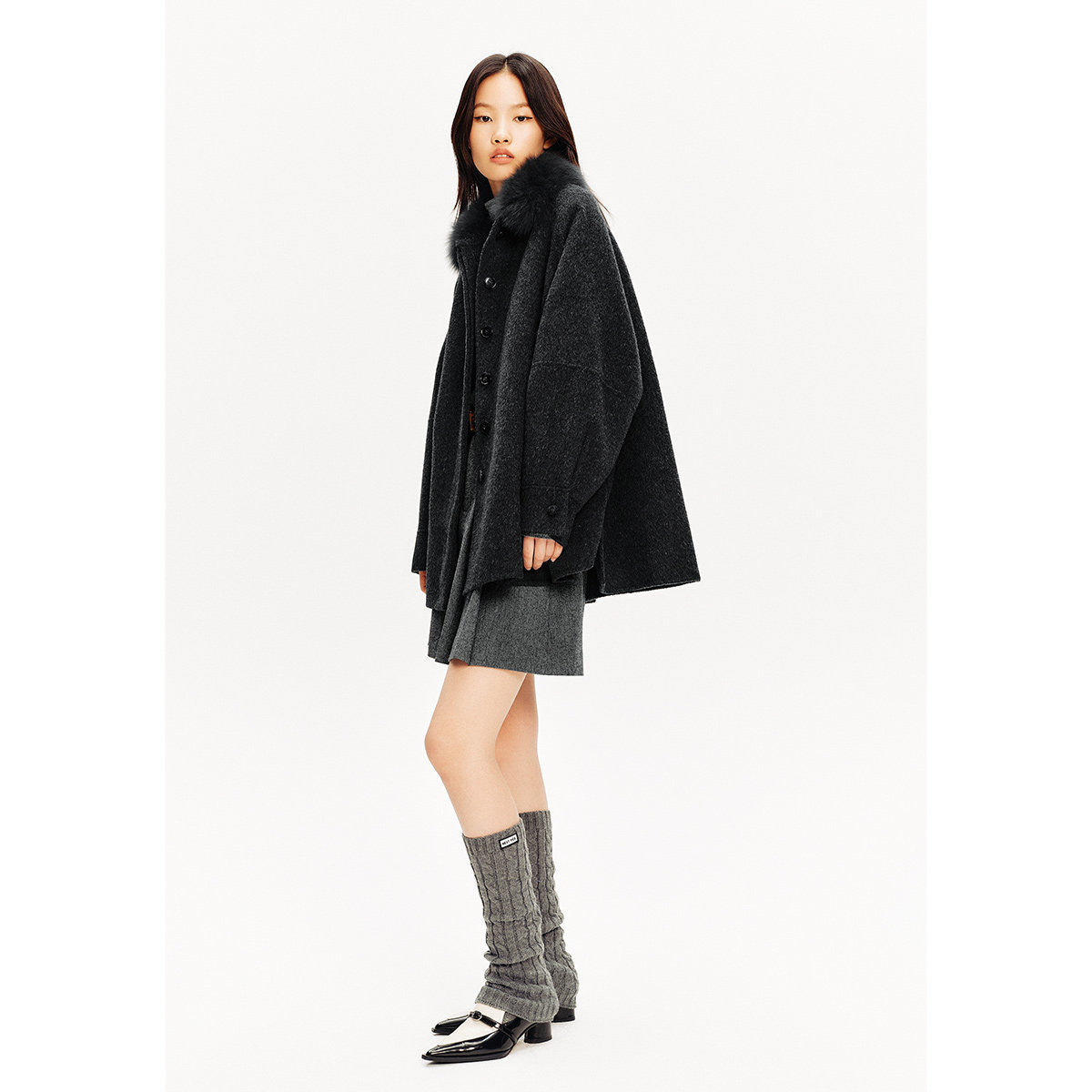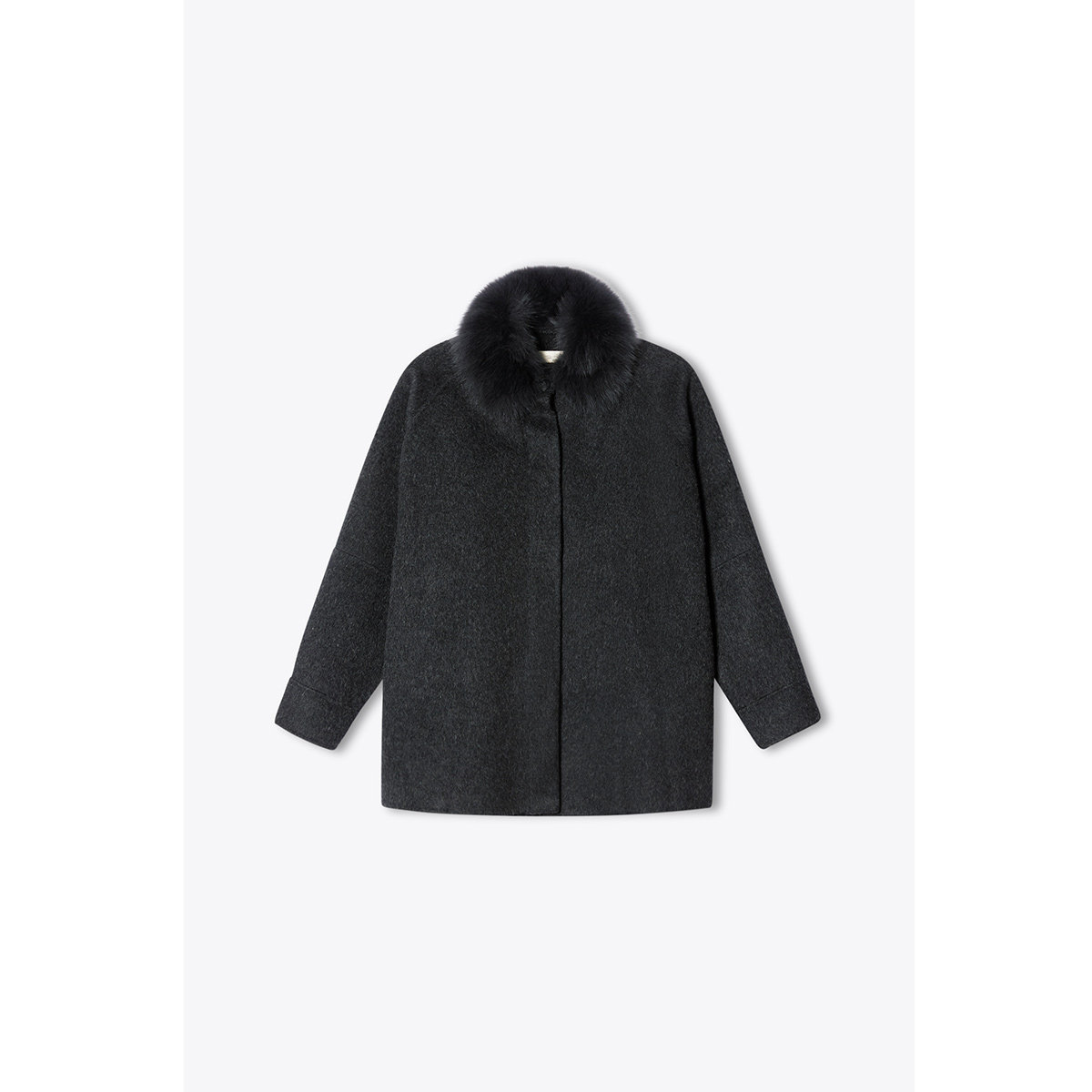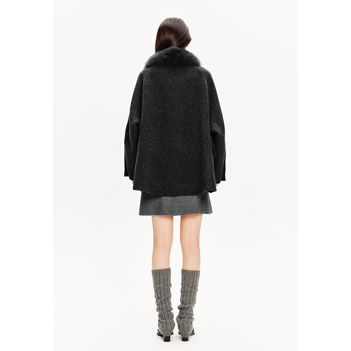 PSALTER诗篇可拆卸狐狸毛领A摆斗篷式毛呢大衣女外套冬款