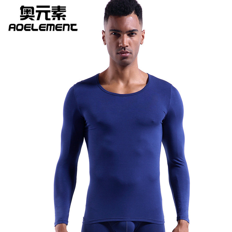 男士莫代尔秋冬单件秋衣薄款保暖上衣修身长袖打底衫圆领基础内衣