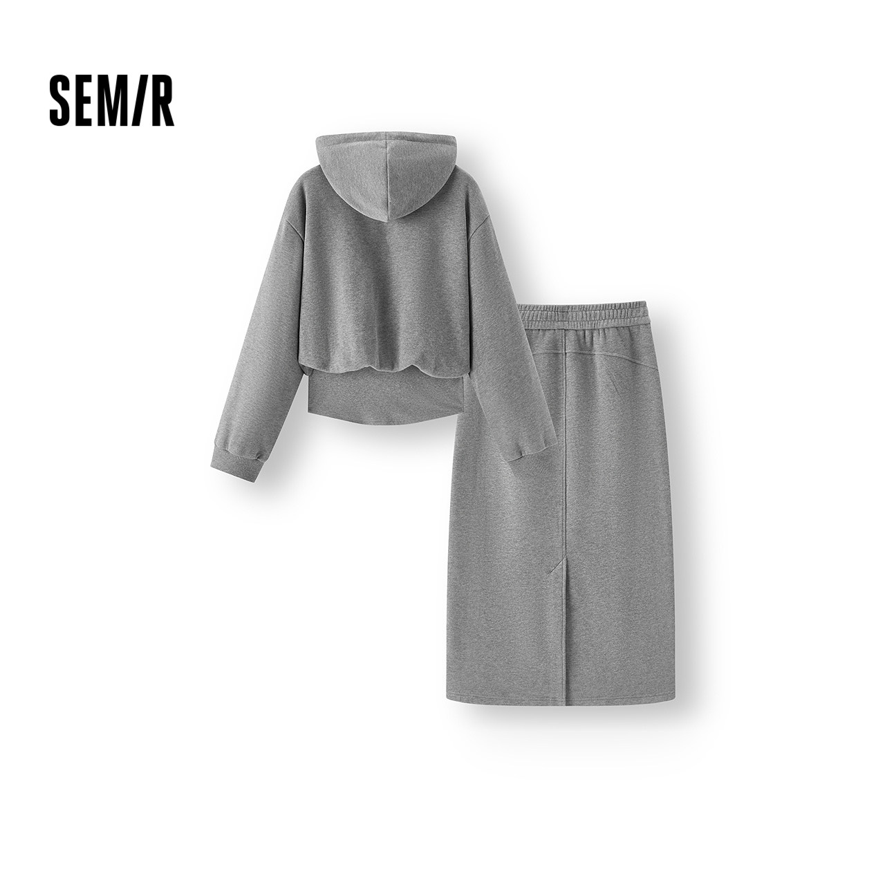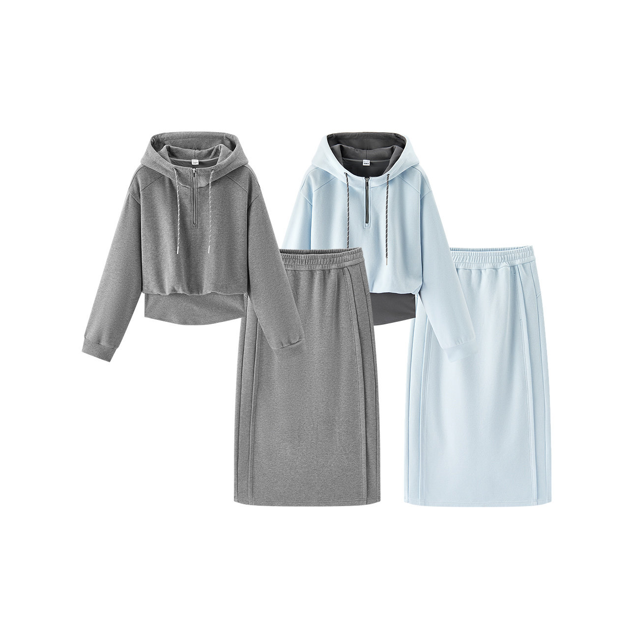 eihey诶嘿时尚简约宽松休闲小众连帽拉链外套长裙半身裙两件套女