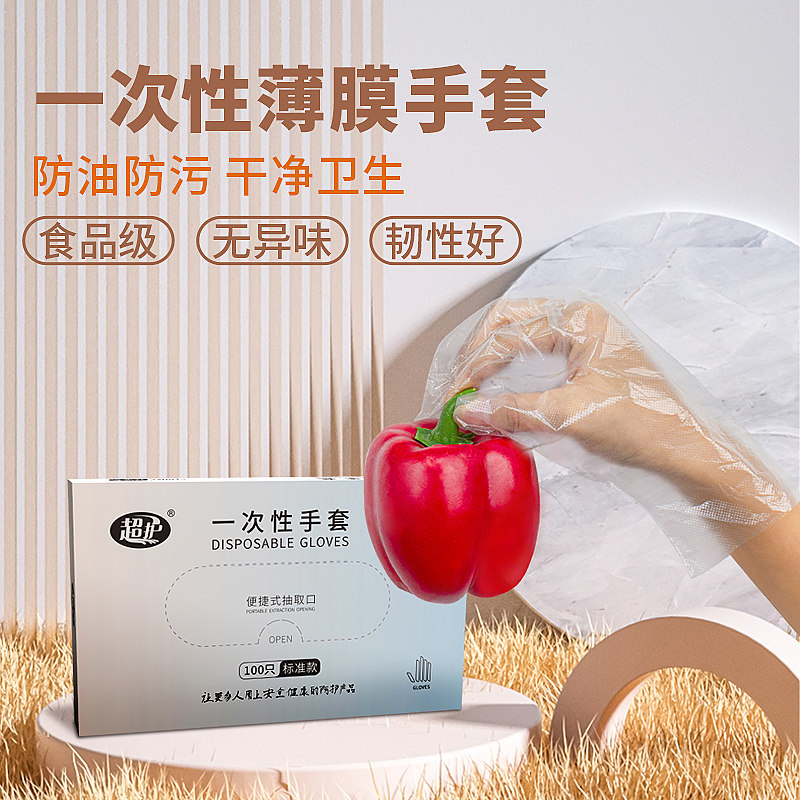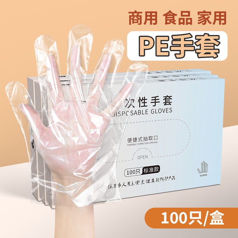 一次性手套加厚款透明薄膜手套PE食品级烘焙餐饮外卖家务手膜批发