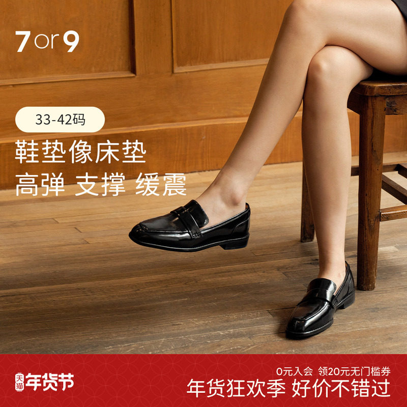 7or9乐福鞋女鞋秋冬牛皮一脚蹬英伦风小皮鞋通勤平底单鞋黑糖曲奇
