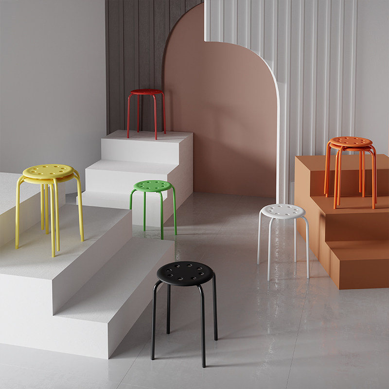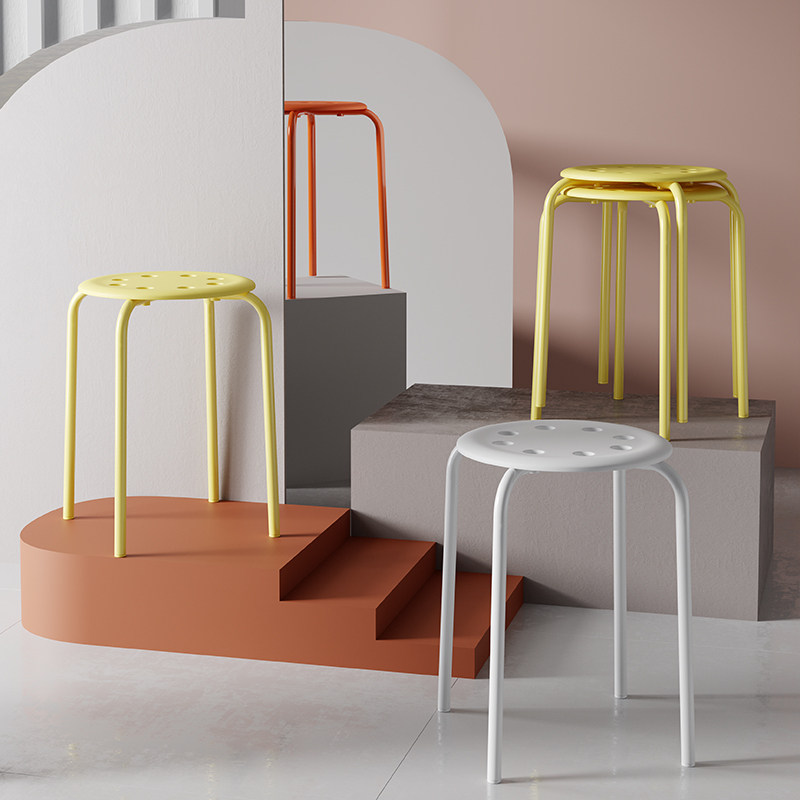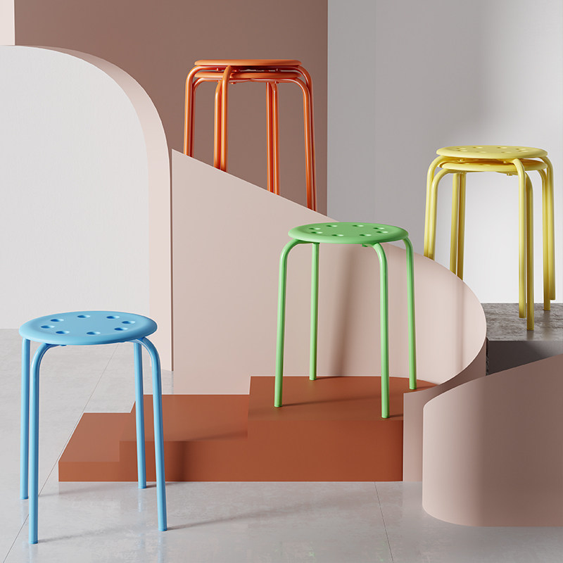 圆凳家用餐厅塑料板凳餐桌凳子加厚独凳铁腿小椅子可叠放收纳结实