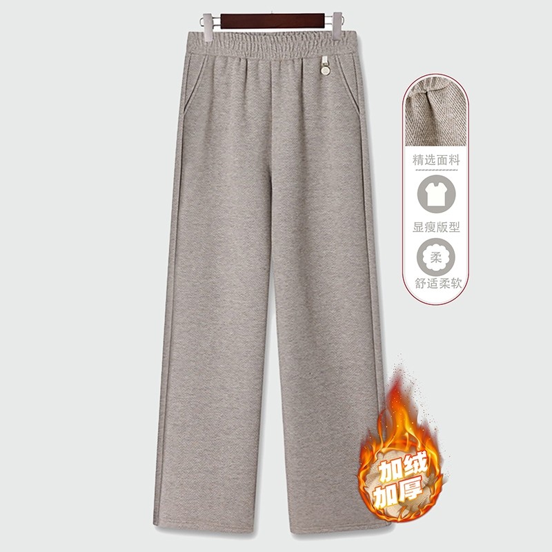 妈妈裤子春秋款松紧高腰弹力中老年女裤宽松大码直筒奶奶加绒长裤