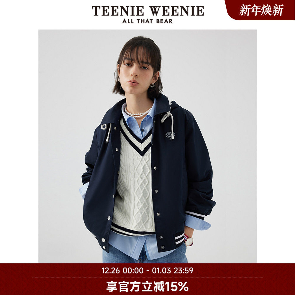 TeenieWeenie小熊奥莱早秋翻领连帽棒球外套学院风小个子女