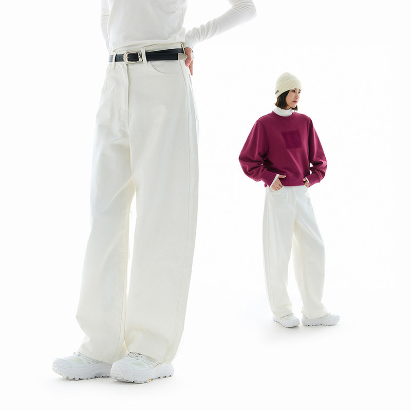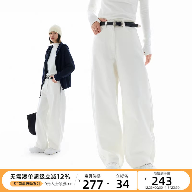 森柔牛仔|森马阔腿牛仔裤女2025秋冬白色牛仔裤简约女士高腰裤子