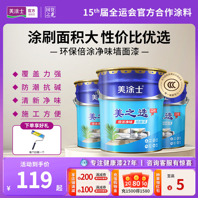 美涂士乳胶漆内墙漆美之选易涂自刷水性油漆室内墙漆白色涂料20KG