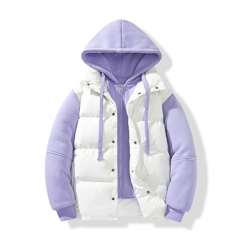 OVJF2025冬季新款假两件棉衣加厚宽松款连帽面包服青少年户外运动