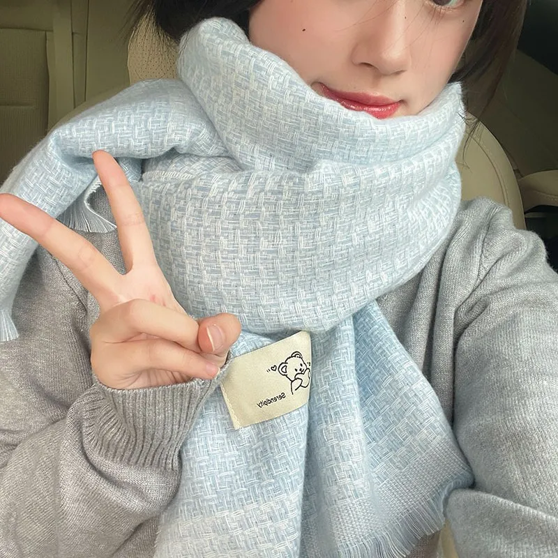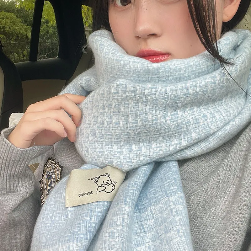 小清新格纹围巾女冬季新款韩版仿羊绒高级感保暖加厚长款披肩围脖