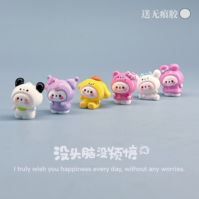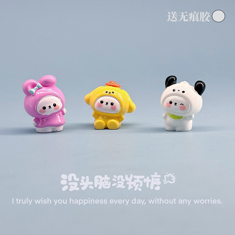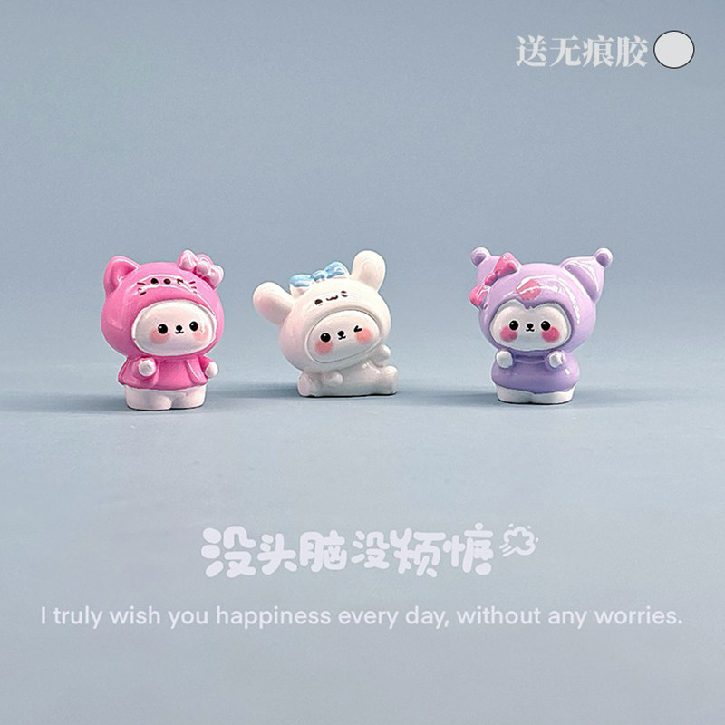 可爱卡通三丽鸥头套小熊车载摆件中控屏电脑工位桌面解压治愈摆件