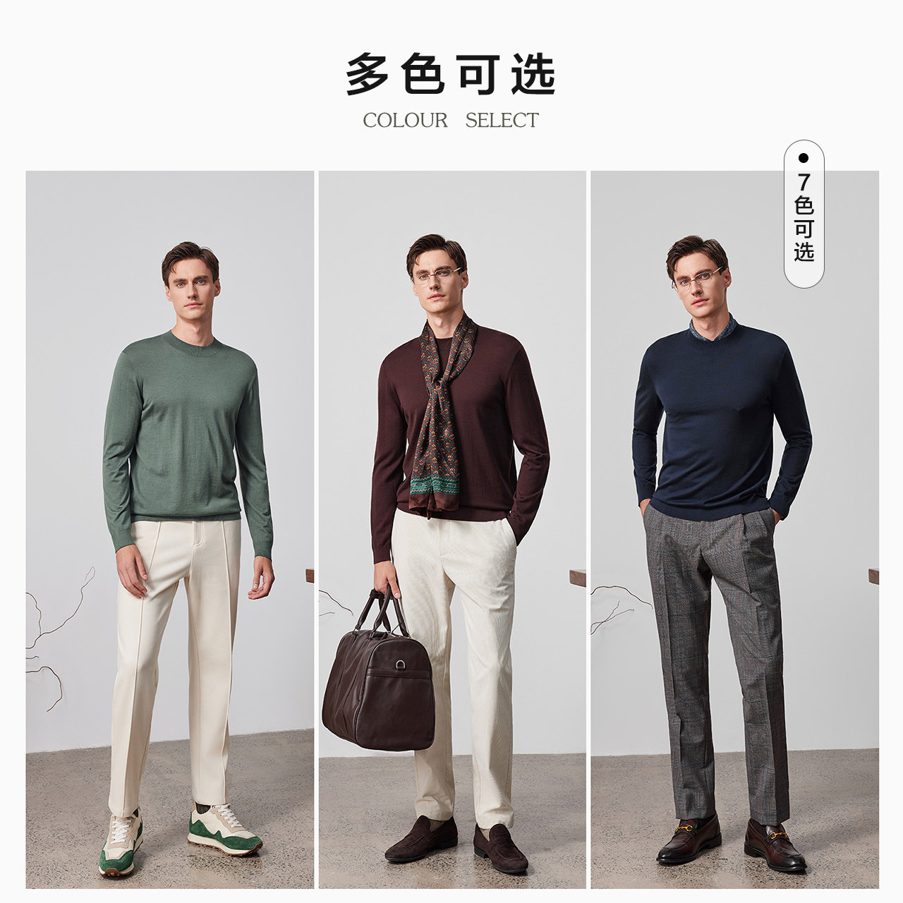 柏品16针纯羊毛针织衫男秋新品易打理可机洗商务休闲半高领薄毛衣
