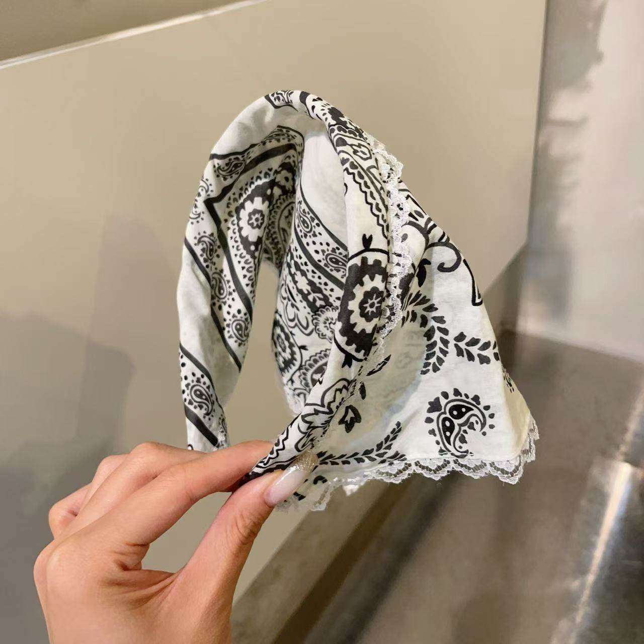 7.12韩国东大门baket发饰复古显白腰果花头巾发箍三角巾头箍