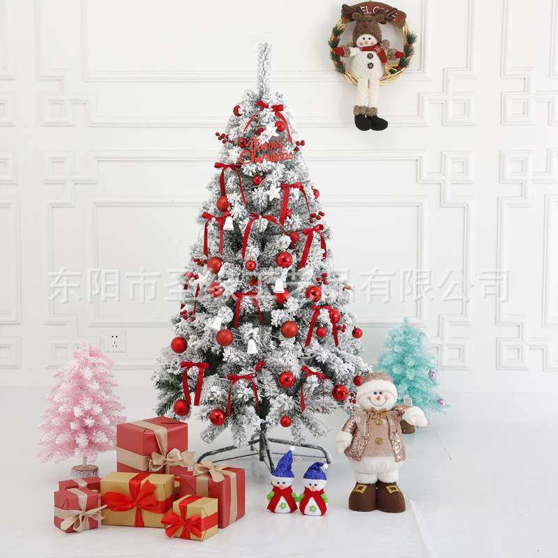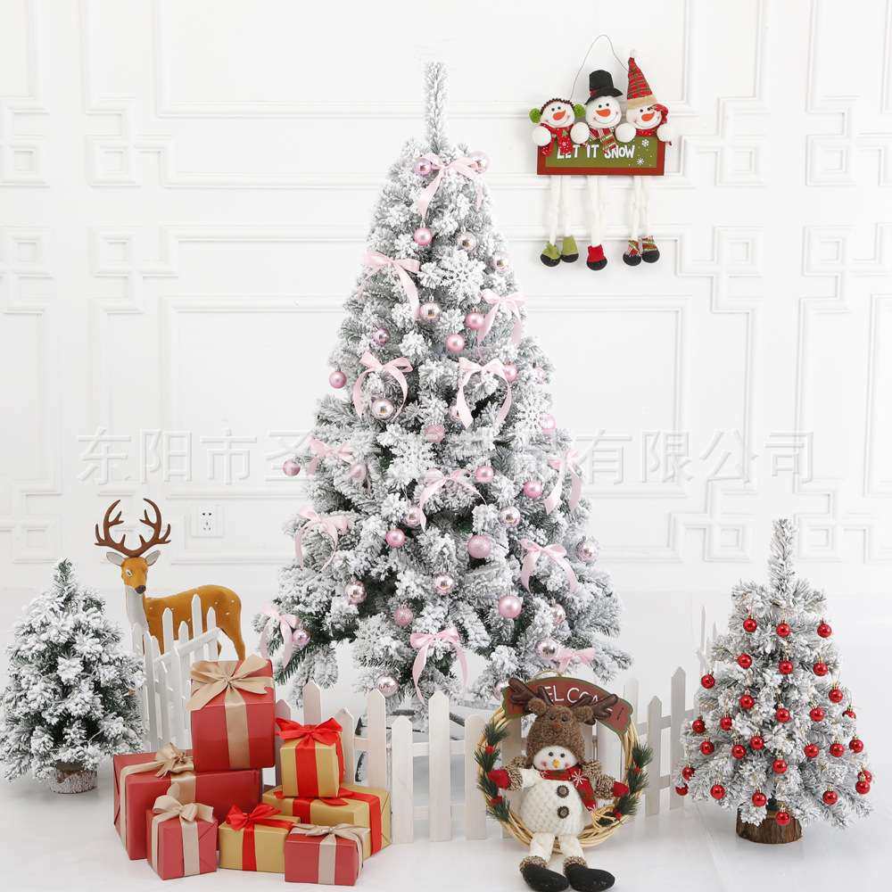 植绒圣诞树套餐家用白色喷雪加密仿真雪松树酒店商场圣诞节装饰品