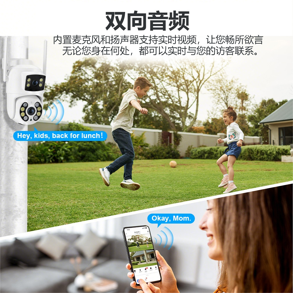 家用室外无线摄像头智能监控器360度全景高清夜视双镜头AI智能双画面摄影手机远程带语音超广角摄像头户外