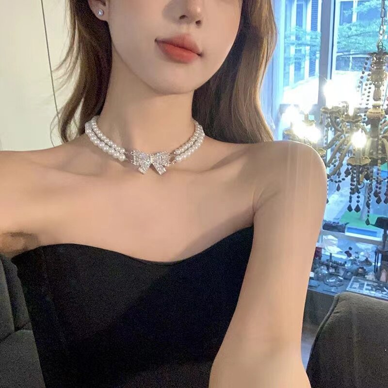 巴洛克在逃公主珍珠蝴蝶结项链2024新款爆款颈链轻奢小众锁骨链