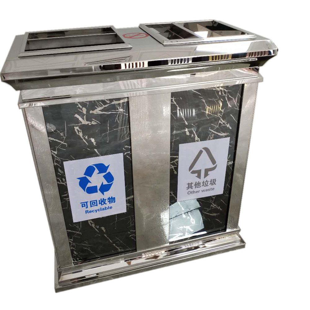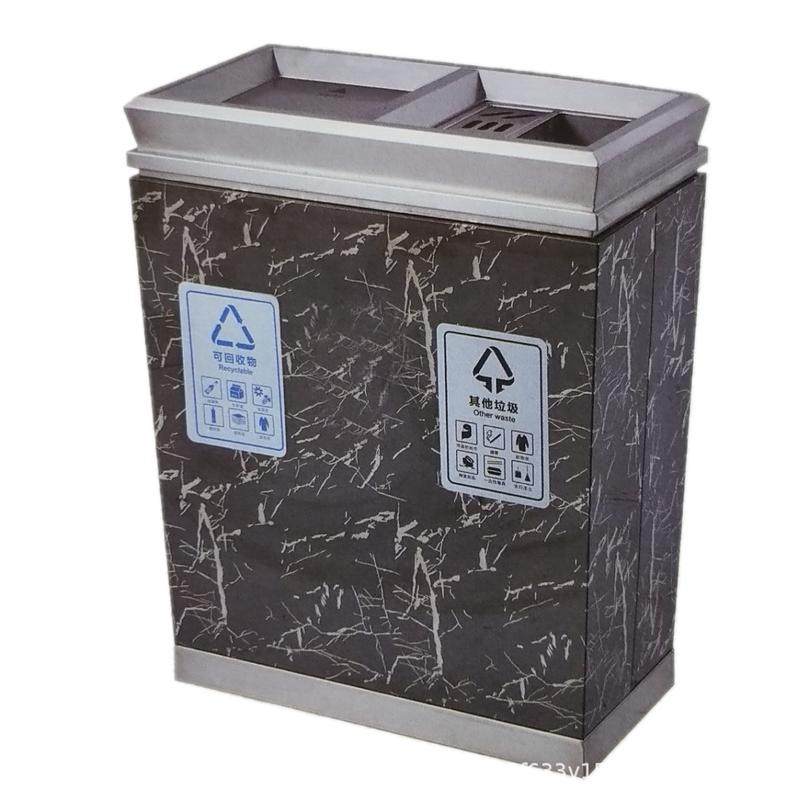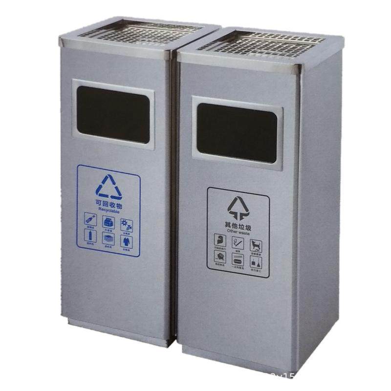 商场酒店机场室内双桶不锈钢分类垃圾桶顶盖烟灰缸翻盖直投垃圾箱