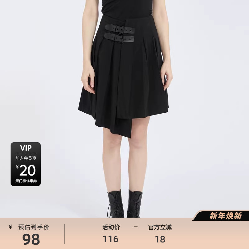 RAPPEYE 设计感褶皱折叠伞裙显瘦高腰不规则A字裙小个子半身裙女