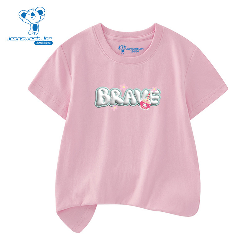 XD真维斯女童春季新款甜美可爱夏日清新字母印花女孩短袖T恤