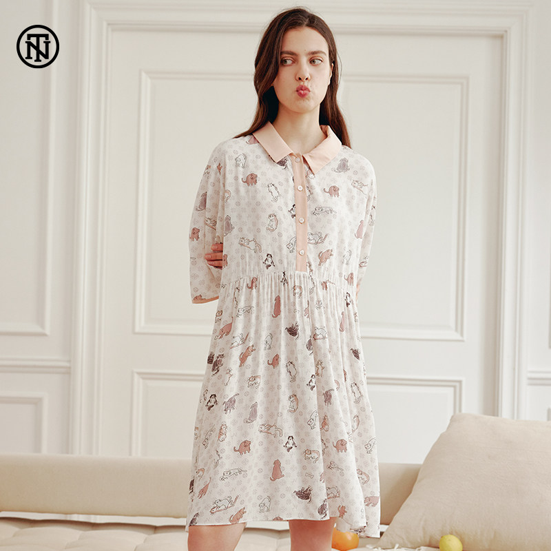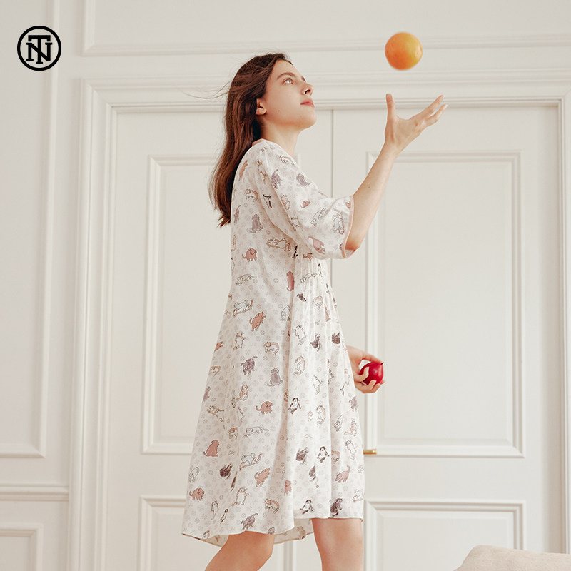 NoirTease奈黎诗棉质女士睡衣春夏薄款宽松大码休闲透气睡裙2021