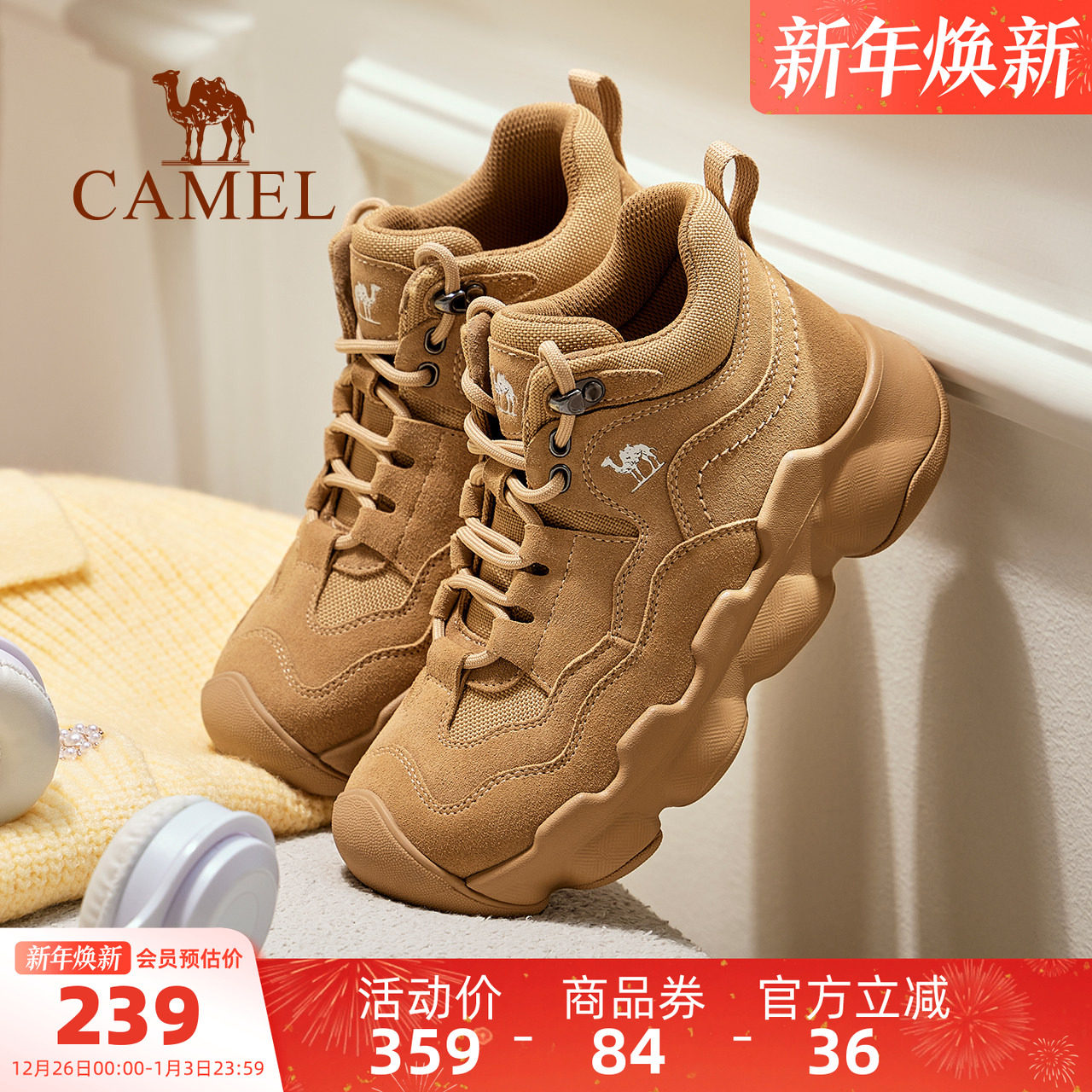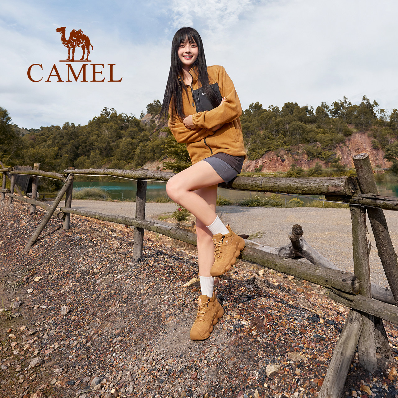 骆驼女鞋2025秋季新款户外运动鞋女款短靴子厚底徒步户外登山鞋子