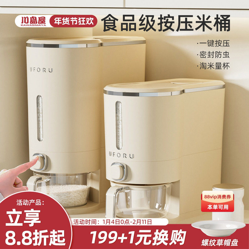 川岛屋米桶防虫防潮密封米缸家用食品级米面储存容器高端按压米箱